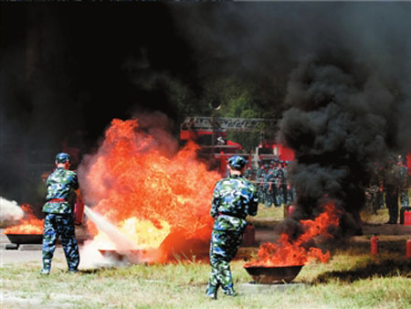 伴隨著一陣濃煙騰空而起,一群大學(xué)生捂住口鼻,弓著身,緊張而有序地從宿舍樓跑出,疏散到安全地帶。22日,北京大學(xué)2700名正在軍訓(xùn)的大學(xué)生在懷柔軍訓(xùn)基地參加了消防疏散演習(xí)。據(jù)了解,此次演練,是本市學(xué)生消防演習(xí)中規(guī)模較大的一次。