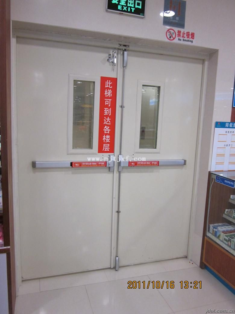 三、特殊五金配置,根據其使用部位的特殊性,商場中的防火門建議使用推桿鎖,如須避免不相干人員的進出可選用帶有報警功能鎖具,安裝防火順序器效果更佳。超市內部使用常開式防火門時必須采用常開式防火閉門器。