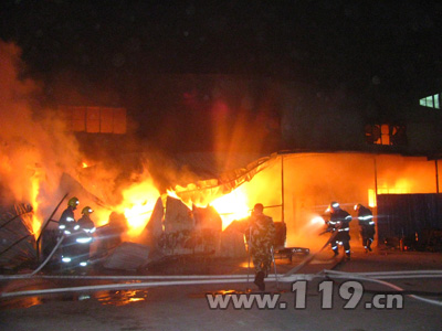 12月9日凌晨0點(diǎn)04分,杭州蕭山消防中隊(duì)接到區(qū)指揮中心出警單稱:新塘婁下陳凱麗紡織廠車間廠房發(fā)生火災(zāi),且火勢較大。以加強(qiáng)第一出動(dòng)的原則,蕭山消防中隊(duì)出動(dòng)4輛消防車和21名官兵趕赴現(xiàn)場,同時(shí)調(diào)派市北中隊(duì)及周邊民辦專職消防隊(duì)趕赴現(xiàn)場增援。